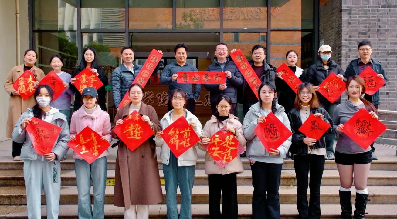 12月19日中午,“师生聚翰墨,雅韵贺冬至”书法体验活动在文科综合楼1005大厅举行。师生齐聚一堂,挥毫泼墨,书写蕴含吉祥寓意的新春对联与“福”字。红纸墨香间,一幅幅作品不仅承载着节令祝福,更传递出文学院大家庭的深厚情谊。