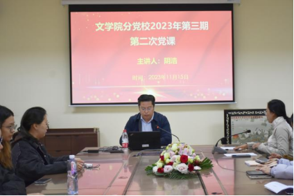 2023年11月15日,文学院分党校在文科楼5335会议室举办2023年第三期第二次党课,文学院党委副书记阴浩作《党的组织机构》专题党课。文学院分党校秋季学期培训班全体学员参加了学习,活动由文学院分党校秘书杨兴丽主持。