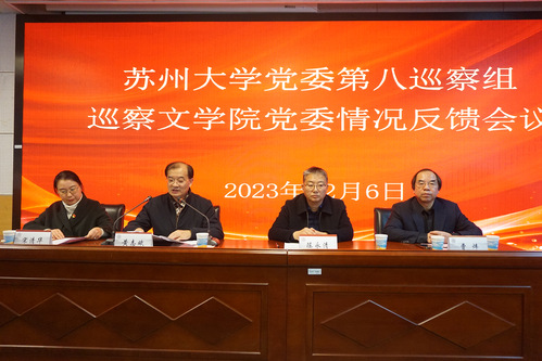 12月6日下午,校党委第八巡察组巡察文学院党委情况反馈会议在独墅湖校区1005幢5339会议室举行,校党委常委、统战部部长、校党委第八巡察组组长黄志斌,校党委巡察工作领导小组成员、财务处处长陈永清,校党委第八巡察组全体成员,文学院党政班子成员、党委委员和全体教职工参加了会议。会议由文学院党委书记宋清华主持。