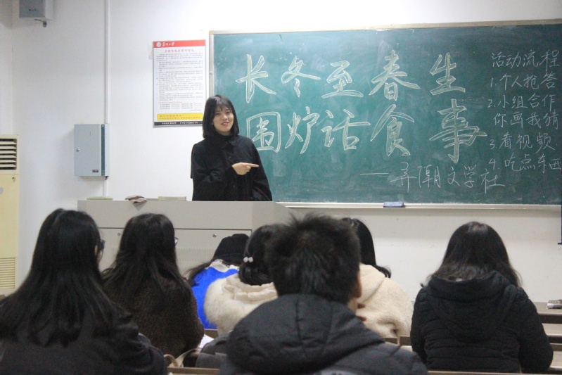 12月22日下午四点半,“长冬至春生,围炉话食事”活动,在文综楼1002#2102教室顺利开展。本次活动由文学院团委、文学院学生社团联合会主办,由弄潮文学社承办。