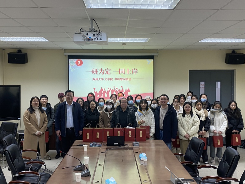 2024年全国硕士生考试在即,为帮助考研学子缓解备考压力,鼓舞考研士气,2023年12月15日下午一点半于文科综合楼1005#5335举行“一研为定 一同上岸”文学院考研慰问活动。文学院院长曹炜、党委副书记阴浩、学工办主任纪金平、团委副书记陆亚桢、辅导员丁小珊和2020级部分考研学生参加了本次活动。
