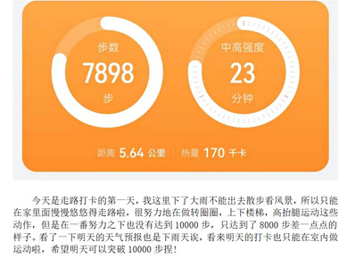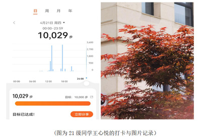 为期十五天的步行打卡活动中,同学们每日按时上传自己的打卡记录。在上传的打卡记录里,既有沿公园奔跑的步数记录,也有锻炼结束后的内心感受。春天的明媚与运动的激情一同被镌刻在每日的图文中。
