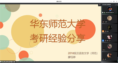 5月25日18:30,“研精覃思,求学不止”——升学经验分享讲座在腾讯会议顺利举行,本次讲座由文学院学生工作办公室、团委主办,学生科技协会承办。