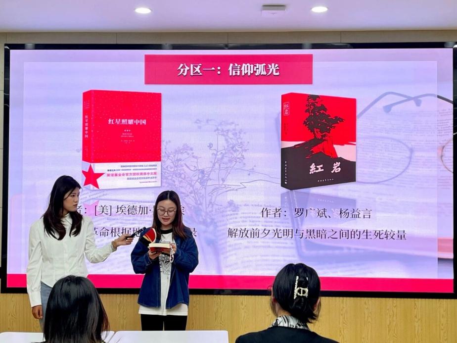 2025年4月17日19时30分,苏州大学文学院分党校组织开展了“书卷相逢,围读研学”活动,活动围绕“信仰弧光”“传记人生”“哲思棱镜”三个分区,精选《红星照耀中国》《红岩》《苏东坡传》《人类的群星闪耀时》《地下室手记》《刺猬的优雅》六本推荐书籍进行,同学们通过朗读经典片段,深入剖析书籍内容、人物背景、核心思想,感受文学经典的魅力。文学院分党校2025年春季学期培训班全体学员参加了本次读书分享活动。
