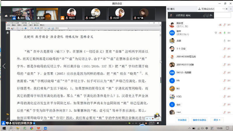 6月11日晚七点,文学院与唐文治书院联合举办的“夏季学术周”暨仲联学术讲坛第六讲以线上形式如期举行。此次讲座由苏州大学驻校学者、特聘教授杨军先生主讲。讲座开始前,文学院院长兼唐文治书院院长曹炜教授致欢迎辞,文学院党委书记宋清华女士也向杨教授表达了敬意和谢意。讲座由汉语国际教育系主任王建军教授主持。本院汉语言文字学学科相关教师、研究生共80多人聆听了讲座。