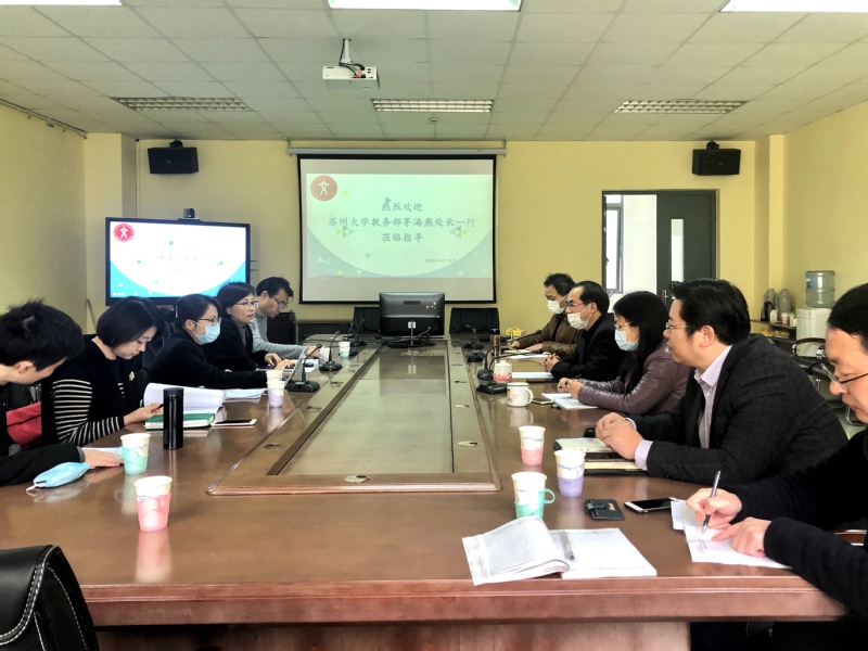 4月10日,苏州大学教务部教学改革与研究处处长茅海燕、副处长李振一行5人来我院做调研。我院院长曹炜、书记孙宁华、副书记阴浩、副院长周生杰、办公室主任赵曜、学生工作办公室主任纪金平、团委书记胡萱、教务秘书王台生等相关人员参加了座谈调研会。
