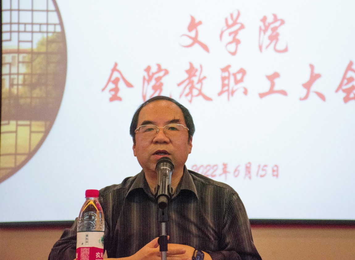 2022年6月15日下午,文学院全院教职工大会在独墅湖校区炳麟图书馆学术报告厅召开。会议由院长曹炜主持,学院党政班子成员及全体教职工出席了本次会议。