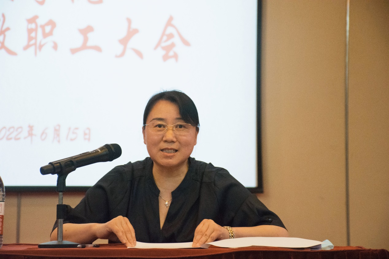 首先学院党委书记宋清华报告工作。她向大家通报了苏州大学2021年度综合考核结果,文学院连续3年蝉联第一等次,并且在2021年度的立德树人考核中获得先进单位,学院汉语国际教育专业获批国家一流专业,同时也通报了学院在组织、宣传、学工和团建等方面取得的佳绩,大好消息振奋人心,全体教职工都欢欣鼓舞。