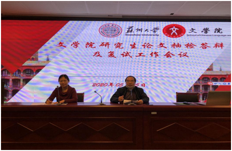 曹炜院长从三个方面介绍了学校对研究生论文抽检盲审答辩及研究生复试工作的要求和注意点,表示学院要进一步在领会精神基础上更加细致和完善方案。首先在研究生论文抽检盲审工作方面,要尊重、遵守《苏州大学硕士、博士论文盲审实施办法》(苏大学位〔2019〕18号),确实提高文学院研究生论文抽检盲审合格率,消灭不合格现象。其次在研究生复试工作方面,学院将组织相关培训,全体教师齐心协力,按照教育部及学校的相关规定,力保今年的研究生复试工作顺利实施。最后,在研究生论文答辩工作方面,积极探索并努力做好线上线下答辩前准备工作。