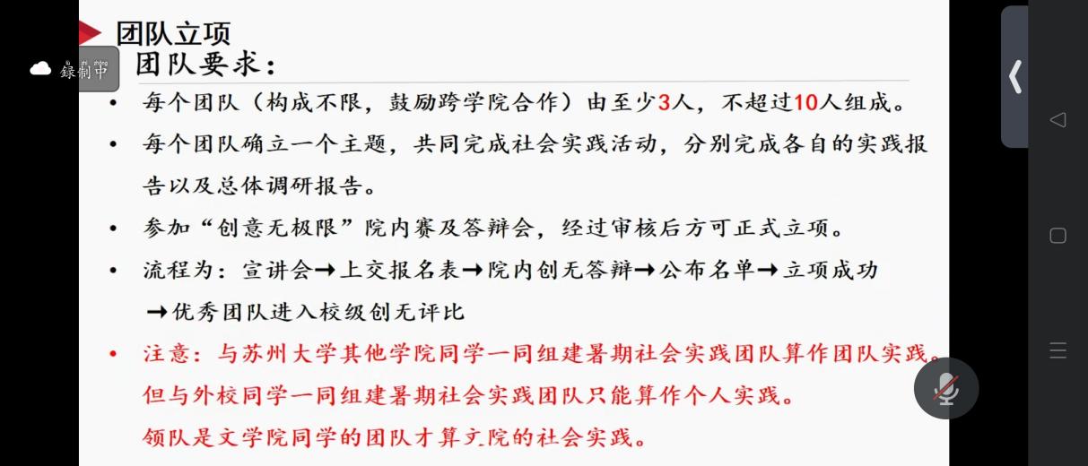 最后,巩睿说明了团队立项与考核要求,同学们对暑期社会实践活动有了清晰的认识,明确了要求。