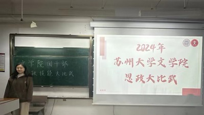 4月19日18:30,苏州大学文学院团干部思政技能大比武暨团支部书记专项赛在文综楼1001#1202教室顺利举办。团干部思政技能大比武作为基层团支部书记培训和大练兵的一部分,旨在通过以赛促学、以赛促建的方法,带领各团支部引领广大青年团员学习两会精神,提升基层团组织的活跃度、凝聚力。本次活动由文学院团委主办,文学院团校承办。