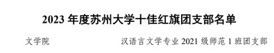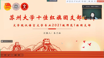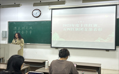 活动伊始,主持人郑雅文对2023年度十佳、五四红旗团支部进行了表彰。收到表彰的团支部分别为:汉语言文学专业2021级基地团支部、2021级师范1班团支部和2021级师范2班团支部。其中,汉语言文学专业2021级师范1班团支部以优异的表现荣获2023年度苏州大学十佳红旗团支部称号。在过去一年里,以上优秀支部团结全体支部团员,积极开展各类丰富多彩的活动,充分展现了新时代青年的风采和担当。