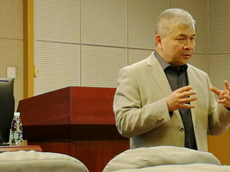 讲座伊始,周国娟副教授由《体演文化教学法》一书引出本次讲座的主讲人——简小滨教授。简小滨教授是美国俄亥俄州立大学东亚语言文学系终身教授、博士生导师,俄亥俄州立大学美国教育部全美东亚语文资源中心副主任。简教授在俄亥俄州大学长期从事比较文学、跨文化交流以及汉语国际教育工作,在比较文学、文化研究以及外语教学法研究方面发表了一系列著作与文章,并曾在国际国内许多大学演讲和任教。
