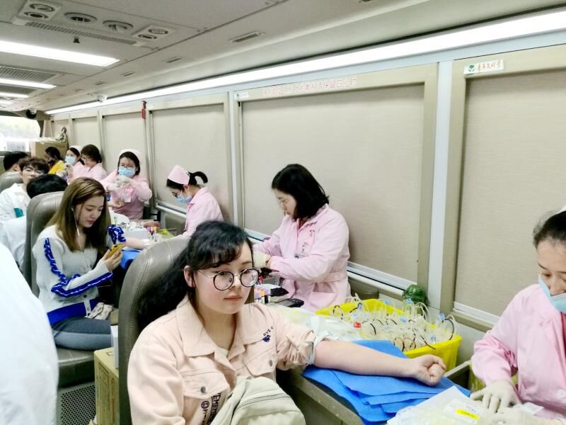 在参加献血活动的同学们当中,不乏有第一次尝试献血的同学。对于这些内心紧张的献血者,医护人员和其他同学都进行了温柔的安慰,以便帮助献血者放松心态。而一些有过献血经历的同学则面带笑容跟医生聊着天,一时间,献血车上气氛十分温馨轻松。