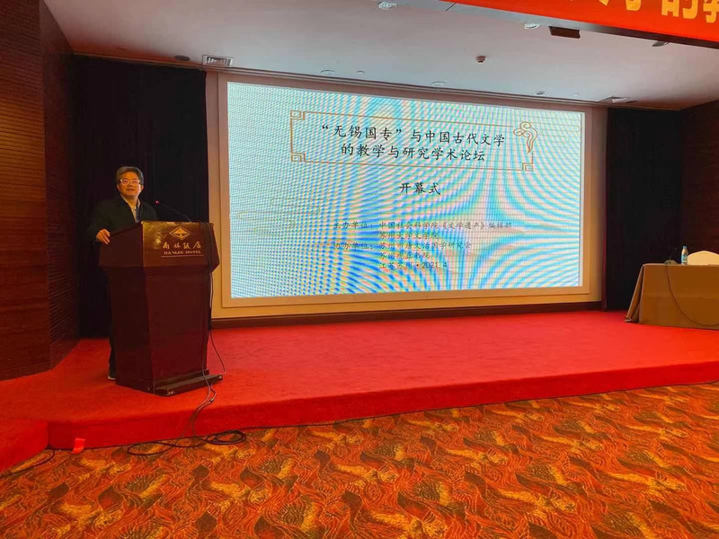 2021年4月10日至11日,由中国社会科学院《文学遗产》编辑部、苏州大学文学院主办,苏州市唐文治国学研究会、虎丘书院协办的“无锡国专”与中国古代文学的教学与研究学术论坛在苏州金陵南林饭店召开。来自全国多所高校和科研机构的六十余位专家学者相聚一堂,一起总结和探讨百年前唐文治先生创立的无锡国专及其师生在古代文学学术研究和教学中所做出的贡献。中国社会科学院文学研究所孙少华副主编、马昕副编审、胡琦、潘静如、黎思文等老师参加会议。会议开幕式由苏州大学文学院马亚中教授主持,中国社会科学院《文学遗产》副主编孙少华、苏州大学文学院院长曹炜发表讲话。