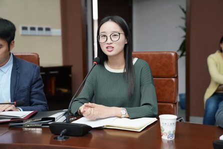 随后,苏州大学实习教师金韫之发言。她回顾了近日在星湾学校的实习体会,并向与会同志诚挚分享了星湾办学的严谨认真、教师团队的团结互助。