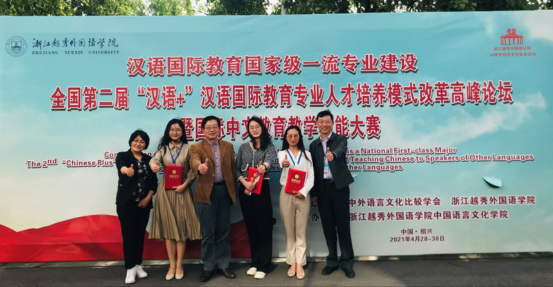 2021年4月28至30日,第二届全国“汉语+”国际中文教育教学技能大赛暨汉语国际教育专业人才培养模式改革高峰论坛在浙江举行,此次活动由国家一级学会中外语言文化比较学会和浙江越秀外国语学院联合主办。我院汉语国际教育系主任王建军教授、教研室主任陶家骏副教授及王军宁博士带领汉语国际教育专业三名学生参加了本届大赛。