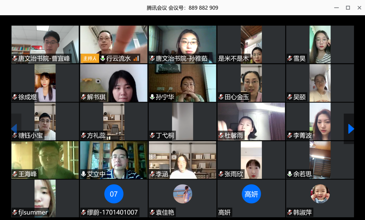 文学院2020届毕业生党员即将离开校园之际,为了引导毕业生党员不忘初心,牢记使命,在今后的工作和学习中发挥先锋模范作用,文学院党委于2020年6月17日下午在腾讯会议为2020届毕业生党员组织了最后一次党课,学院党委书记孙宁华主讲,党委副书记阴浩以及2020届毕业生党员以及预备党员准时参加了此次活动。
