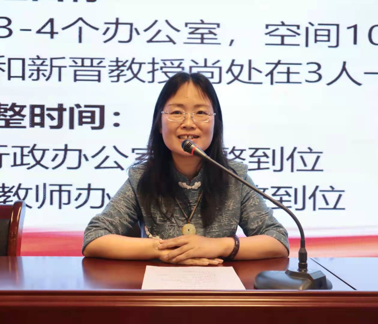 会议的第一个议程为职称评审述职,本次共有7名教师申报副教授职称,分别是朱玲、李晨、何薇、张春晓、顾迁、曹晓燕和莫娲,他们先后上台进行述职,用简洁的语言介绍了自己的个人简历、教学成果、科研成果以及参与的社会活动。结束后,全体教职工进行了投票。