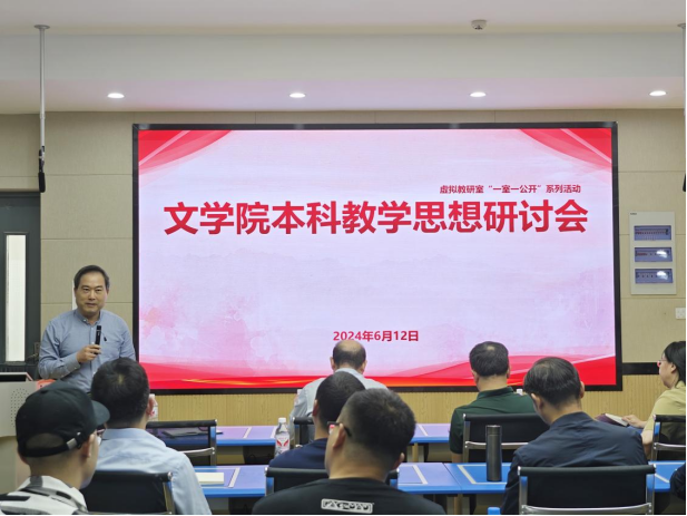 2024年6月12日下午,文学院在1005-5333举办了“本科教学思想大讨论暨课程思政研讨会”。此次研讨会特邀马克思主义学院刘方涛教授与传媒学院广告系主任胡明宇教授作为主讲嘉宾。