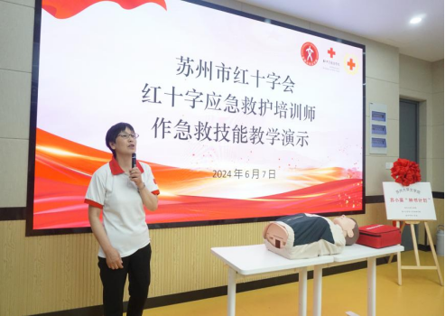 苏州市红十字会红十字应急救护培训师倪淑娟老师进行了急救技能教学演示,向大家讲解了心肺复苏术、自动体外除颤器操作和海姆立克急救法。倪老师借助假人模型教具和自动体外除颤器,将生动形象的讲解和示范相结合,带动全场师生一起学习急救关键动作。同时苏州市红十字会赠送了100本《应急救护手册》,帮助苏州大学文学院师生系统学习急救知识。