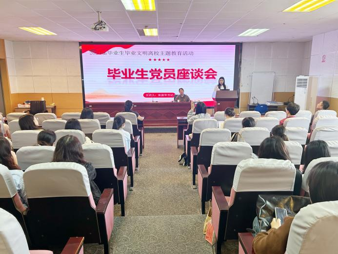 为贯彻落实立德树人根本任务,进一步做好毕业生的教育管理和服务工作,关心关爱毕业生的成长发展,倾听毕业生的心声,更好地为毕业生做好服务保障,2024年5月31日,文学院召开毕业生党员座谈会,院党委书记宋清华,党委副书记阴浩,研究生辅导员孙薇、杨兴丽,各支部书记、支委及全体应届毕业生党员参加了本次座谈会。