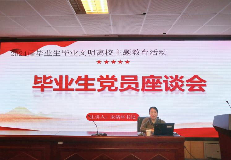 会议伊始,党委书记宋清华向与会毕业生党员圆满完成学业表示热烈祝贺,对他们走向更高更广阔的未来寄予最美好的祝愿。书记指出,研究生是人生的重要驿站,踏上社会又是一个崭新的起点。新时代青年应该昂得起头、弯得下腰、沉得住气,熔铸理想信念,做新时代的奋进者、开拓者和奉献者。
