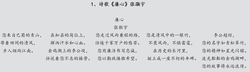 【创作灵感】2023级硕士研究生张灏宇创作了现代诗《廉心》,创作这首诗歌,是为了向李超琼这样一位清廉爱民的官员致以敬意。他的事迹和精神在今天依然具有深远的启示意义。通过诗歌的形式,希望能够传达他那份对民生的关怀、对廉洁的坚守。