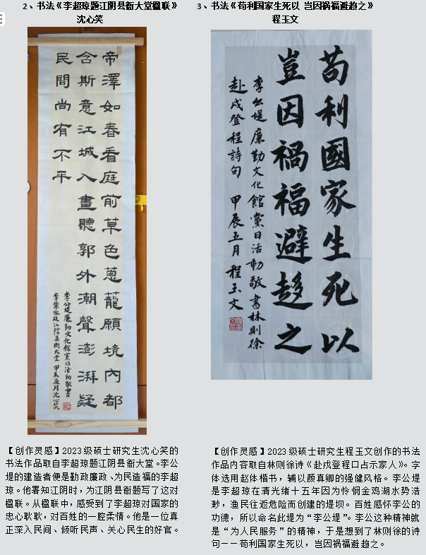 在参观李公堤廉勤文化馆的过程中,一支部和二支部的党员同志们积极思考,并根据自己的学习感想,创作了诗歌作品和书法作品。