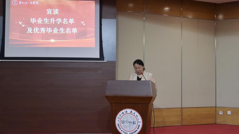 文学院党委书记宋清华宣读苏州大学文学院2024届毕业生升学名单及2024届优秀毕业生名单。