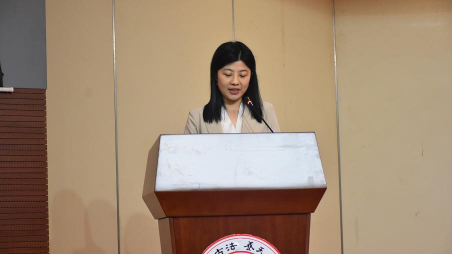 紧接着,文学院副教授杨黎黎作为教师代表发言。杨老师祝贺2024届毕业生顺利完成学业,迈向人生的新征程,并且在讲话中赠予学生三点寄语:第一是战胜恐惧情绪,做一个高开放性的人;第二是乐于分享不同的价值观和世界观;第三是寻找有意义的衡量成功的标准,不被世俗所定义,不被外界评价所困扰。鼓励同学们满怀勇气迈向人生新的旅途,牢记每个闪光的背后,是铺满试错脚印的勇气之路。