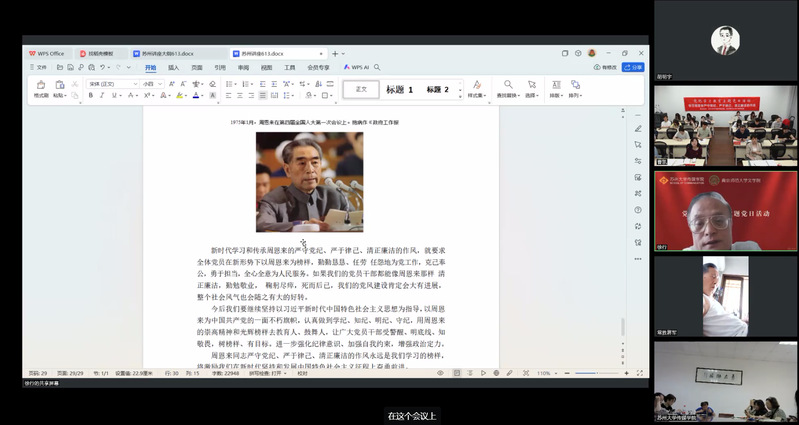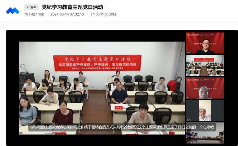 为进一步深化党纪学习教育,不断激发教师党员创新发展的内生活力,强化师德师风自警意识,6月14日,文学院党委组织全体教工党员线上聆听由南开大学周恩来政府管理学院教授、南开大学周恩来研究中心主任徐行老师主讲的“学习周恩来严守党纪、严于律己、清正廉洁作风”的专题党课,文学院全体教师党员参加了线上学习。