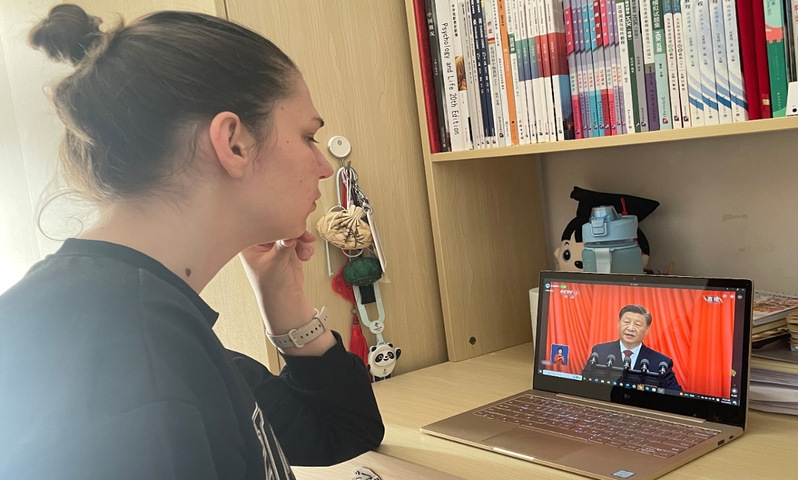 院留学生马一诺坦言这是她看过的规模最大的一次会议。习近平总书记的一句话让她尤其感触良多——“江山就是人民,人民就是江山。中国共产党领导人民打江山、守江山,守的是人民的心。”作为一名留学生,她希望一直向中国人民学习,回国给自己国家的人民讲好中国故事,传播好中国声音。