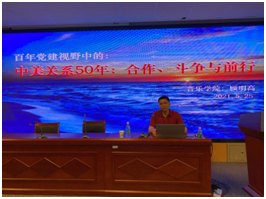本次党课由音乐学院副院长、副研究员顾明高老师主讲。学院研究生辅导员季鹏飞老师主持讲座。