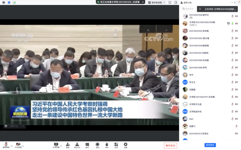 随后,支部全体成员跟随着总书记的脚步,一起到中国人民大学的校园里听一堂立德树人的好课。