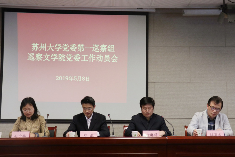 根据学校党委统一部署,校党委第二轮巡察第一巡察组于5月9日至5月20日对文学院党委开展巡察工作。5月8日下午,第一巡察组巡察文学院党委工作动员会在独墅湖校区1005幢5339会议室举行,巡察组全体成员、文学院全体教职工参加了本次会议。动员会由文学院党委书记孙宁华主持。