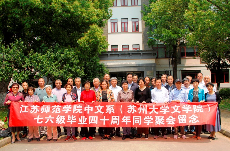 王建良代表校友致辞,他首先对母校母院的热情接待表示感谢。他满怀深情地说,四十年前,在粉碎四人帮后的1977年,我们进入江苏师范学院学习。在拨乱反正的大潮中,我们满怀八十年代特有的激情,苦读,奋斗。时代选择了我们,我们也没有辜负时代,我们和改革开放同行,四十年如一日,不忘初心,教书育人,在各自的岗位上奉献青春,播撒希望,许多人成为语文教育的专家、学校管理的行家,还有各行各业的能人。能以此回报母校,奉献社会,感到无比欣慰。今天欢聚在母校,我们内心充满了喜悦和幸福。