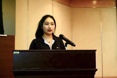 接着,教师代表王宁上台讲话。王宁教授向毕业生们分享了三点感悟。第一,要想做事先做人,专业技能固然重要,但胸怀、品格对一个人成功与否、达到怎样的人生高度也有重要影响;第二,在这个世界上谁都不欠你什么,我们要懂得感恩、回馈、分享;第三,让优雅成为习惯,怀着永远向美的追求。最后,王教授送给毕业生一句话作为勉励:我的耳畔反复回响着荣誉、责任、国家。
