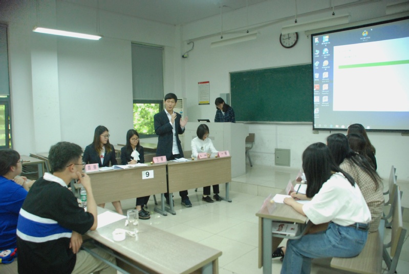 6月1日上午十点,文学院竞智思辨社年度测评赛在1003#3205教室如期举行。本次比赛的主办方为文学院团委、社团联合会,承办方为文学院竞智思辨社。姜礼、陈玉婷、倪颖颖三位同学担任评委。