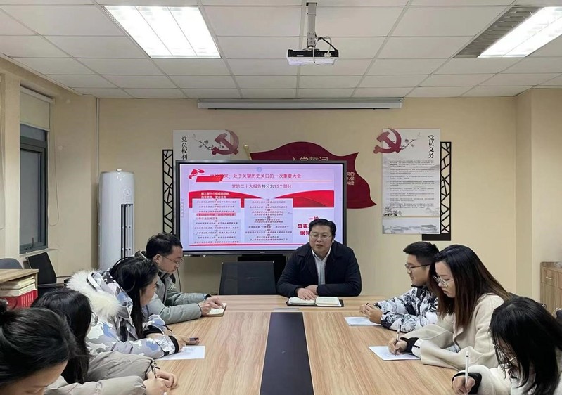 为深入学习贯彻党的二十大精神,进一步强化党员的理想信念,12月2日下午,文学院党委副书记阴浩为本科学生党支部全体党员开展了党的二十大精神宣讲专题党课。此次党课主要分为两个部分,第一部分由阴书记对党的二十大报告核心要点进行解读;第二部分为支部党员同志分享交流学习心得。