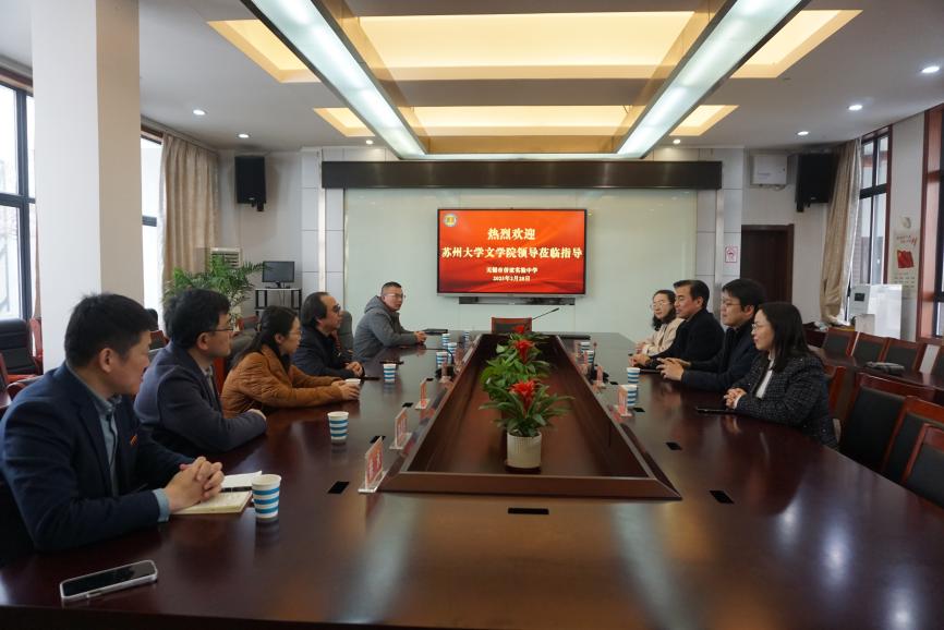 文学院领导班子对无锡市侨谊实验中学的热情接待表示了感谢。曹炜院长和宋清华书记分享了我院与苏州部分优质中学共建实习基地、开展党建共建、建立研究生工作站等情况,邀请侨谊实验中学的优秀教师前来我院进行交流指导,互相分享教学工作经验,并探讨了未来双方可以在党建共建、人才培养、师资培训等多方面建立合作的可行性。