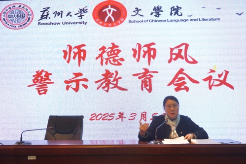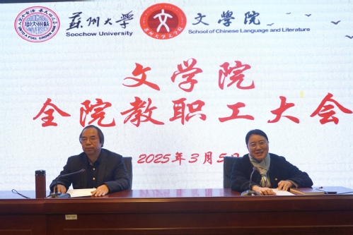 曹炜院长表示,今年是“十四五”收官之年,学院将对照“十四五”规划所提目标,努力推动各项工作再上新台阶。他对本学期的工作作重点规划:一是在国家级奖励、人才称号、教学成果奖、优秀教材等层面发起冲击,争取入选全国高校黄大年式教师团队,重点培育70后老师参加国家级优秀教材评选。二是加大人才引进力度,加强古代文学、文艺学、比较文学等方向的师资引育,尽快配齐师资队伍队形。三是全力支持教师参加江苏省社科奖评审,学院鼓励教师积极申报,根据教师需求将竭尽全力帮助做好准备工作。四是推行“走出去”战略:一方面领导班子要“走出去”,积极寻找地方资源支持,建起合作通道;另一方面也倡导老师们要“走出去”,为地方文化建设服务,扩大苏大文学院的社会影响力,目前学院已经有一部分教师在这方面做出了成绩。五是学校将量化考核各学院的教研室活动,将这个考核同年终高质量综合考核挂钩,学院接下来将召开教研室主任会议,共同学习相关文件,每月开展一次或每学期开展四次教研活动,包括一次课程思政、一次教学观摩。六是严格把关研究生论文送审工作,论文开题报告和毕业论文预答辩等不能形同虚设,导师应把好关,保证研究生论文质量。七是本学期将举办文学院第18届学士杯论文大赛,希望老师们热心、悉心、耐心指导学生写作学术论文,尤其是23级首届省拔尖班、24级首届本博八年一贯制培养拔尖班的学生,高质量的本科学生论文将是反映文学院人才培养质量的重要标志。八是响应苏州市委市政府要求苏州大学举办系列文化活动的倡议,学院将与地方政府联合举办当代文艺评论苏州论坛;与中国作协、中国武侠文学研究会合作,承办古龙小说进校园活动;举办周瘦鹃诞辰130周年纪念学术活动等。九是重视师德师风建设,对近期兄弟高校发生的师德师风问题要引以为鉴,决不能因为这方面问题影响学院声誉以及学院的高质量考核评价。十是继续做好学院创收工作,学院将拓展培训市场,拓宽创收渠道,同时希望老师们积极提供信息、资源等,共同为学院的创收工作做出贡献。