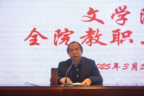 2025年3月5日下午,文学院新学期教职工大会在5339报告厅顺利举行。会议由院党委书记宋清华主持,全体教职工出席了本次会议。会议的主要内容是布置本学期主要工作任务和进行师德师风警示教育。